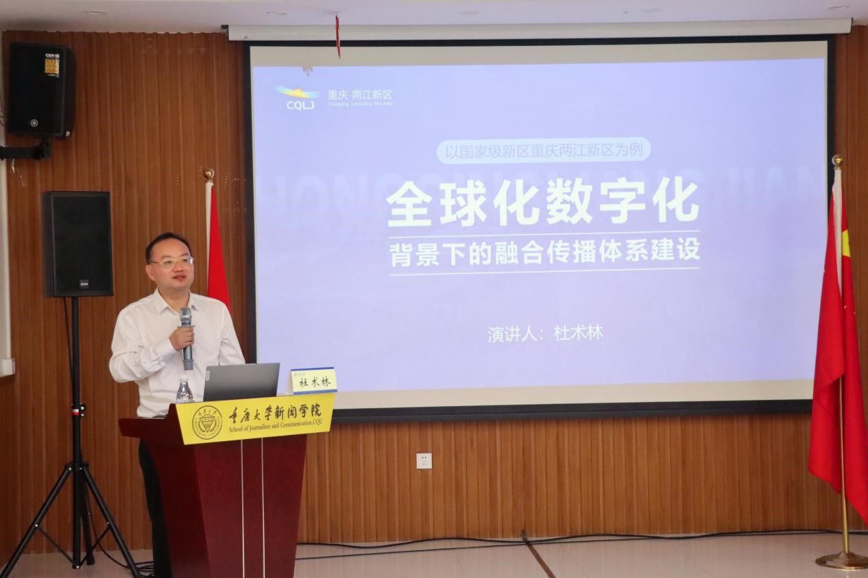 “马克思主义新闻观大讲坛”第三期成功举办,重庆两江新区党工委宣传部(文明办)部长、网信办主任、融媒体中心主任杜术林做主题为“全球化数字化背景下的融合传播体系建设——以国家级新区重庆两江新区为例”的专题讲座,讲座由成人短视频