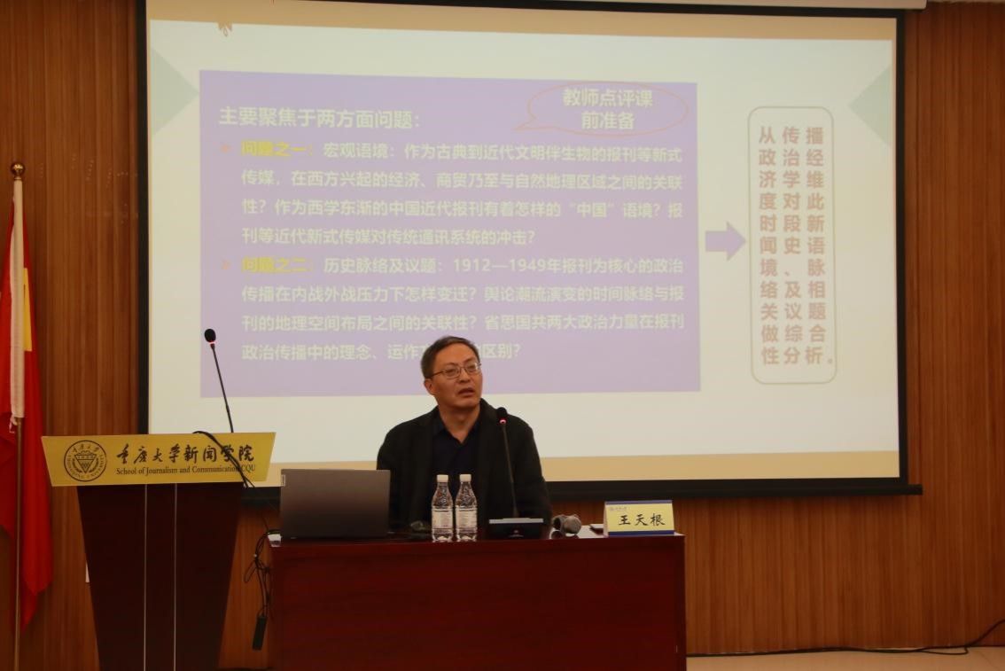 在交流互动环节,王天根教授回答了同学们关于“中国新闻史研究样本的选择”及“上海记者座谈成立原因”等问题。