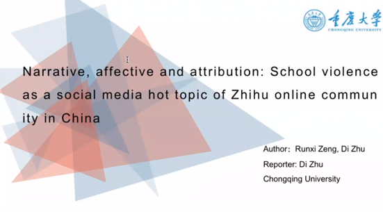 博士生朱迪的论文“Narrative, affective and attribution: School violence as a social media hot topic of Zhihu online community in China”,分析人们对不同类型的校园暴力和话题的讨论呈现出偏好分布特征,在对校园暴力进行归因与归责时,主要指向施暴者、个人、家庭和社会主体。