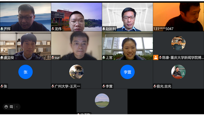 副院长龙伟教授和齐辉教授主持,来自中国人民大学、中国社会科学院、中国传媒大学、暨南大学、安徽大学、华南理工大学、扬州大学、广州大学、上海外国语大学、成人短视频
