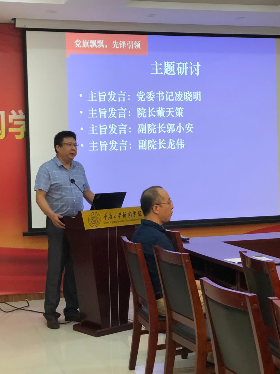 “庆祝建党99周年”主题研讨活动第二场如期举行。本次议题是疫情防控常态化与学术战“疫” 暨 “面向新时代的新闻传播学科建设研讨会” 精神学习。党委书记凌晓明、院长董天策等学院党委领导和各教研室主任分别作了主旨发言。支部书记李成波主持了本次研讨会议。