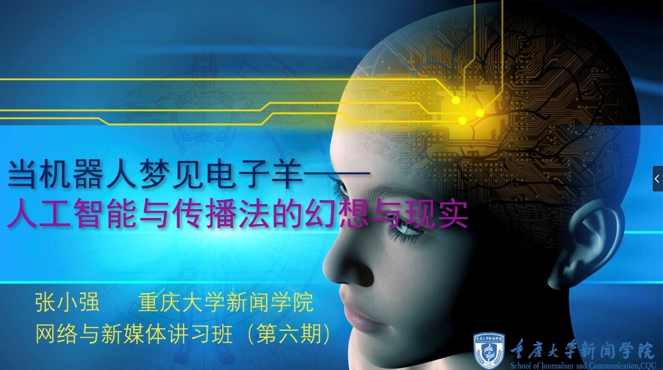7月12日晚,张小强教授为2020“网络与新媒体讲习班”全体学员带来题为“当机器人梦见电子羊——人工智能与传播法的幻想与现实”的线上直播讲座。张小强教授是教育部新世纪优秀人才,成人短视频