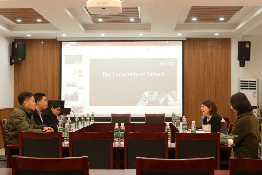 的热情接待表示感谢。她表示上次愉快的会谈令人印象深刻,这也促成她此次再次到访。她对索尔福德大学艺术与传媒学院做了简单介绍。索尔福德大学艺术与传播学院是英国最大、发展最快的艺术传媒学院之一,学院正致力于加强数字媒体、艺术设计、表演艺术等领域的学科建设。索尔福德大学作为全英唯一一所参与“英国媒体之城”建设的大学,与BBC、ITV等众多公司密切合作,积极互动,为学生提供了无可比拟的工作和学习机会。她表示,索尔福德大学艺术与传播学院高度重视与成人短视频