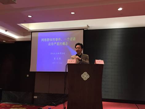 在11日上午举行的“主题论坛一”中,董天策教授发表了题为“'网络群体性事件',一个话语误导严重的概念”的演讲。通过梳理近年来学术期刊中“网络群体性事件”等概念涉及的相关案例,他指出这些研究对象与对应的概念间存在“名异而实同”。“网络群体性事件”的不合理,在于其不能科学地表述其研究对象并造成了研究范式的错位,较为合理的概念应当是“网络公共事件”。