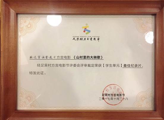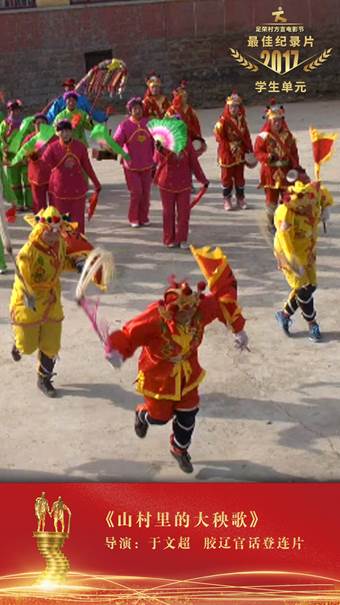 “《山村里的大秧歌》用巧妙的双线结构,呈现了一支自发组织起来的秧歌队台前幕后的喜怒哀乐。影片风格像秧歌一样,真情质朴,风趣幽默,通过细腻的镜头语言,关注并思考当代农民的精神文化生活需求,以及非物质文化遗产的传承问题,体现了新一代纪录片人广阔的社会视野和担当精神”,这是组委会为于文超同学获奖作品所撰写的颁奖词。