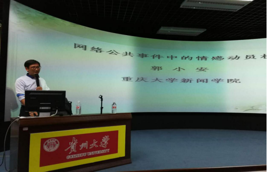 2017年5月25日,应贵州大学文学与传媒学院的邀请,成人短视频 郭小安研究员赴“贵州大学文科讲坛”讲学,在文传学院情景模拟实验室,以“网络公共事件的情感动员机制”为主题,对国内外相关研究进行了理论梳理和评述,然后从愤怒、悲情和戏谑三个维度,结合近十年的大量案例,分析了自媒体环境下公共事件情感动员的动态过程及规律,最后结合当下社会生态,对这一现象的深层次原因进行了反思。