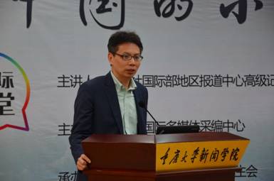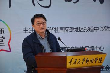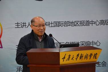 重庆市委宣传部新闻阅评专家组组长朱东,重庆之声主持人穆克非,新华社国际部主任编辑刘春燕、记者周喆、陈璐,新华社重庆分社记者周文冲出席了本次讲座。