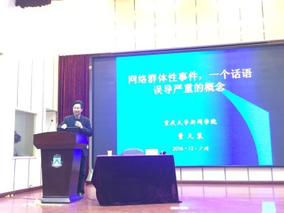 19日上午,应广东外语外贸大学新闻与传播学院的邀请,董天策院长为该院研究生做了一场学术讲座,详细分析了“网络群体性事件”存在的学理问题,指出“网络群体性事件”是“网络”与“群体性事件”拼接在一起而形成的概念,其结果是延续了“群体性事件”的学术话语与价值立场,从而导致对网络舆论聚集这一现象的污名化,可能压制乃至扼杀正常的网络舆论监督。因此,对网络舆论聚集及其相关问题的研究,应当有多科的理论视域中展开,譬如网络公共领域、网络公关/网络营销、网络谣言治理、网络与集体行动、网络与社会运动、网络与国家安全等等。