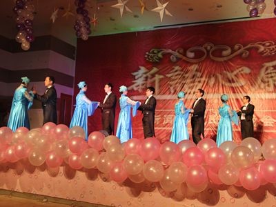晚会的节目主体由大一同学构成,其中包括四个传统的班级集体节目和若干自创节目。大二学生也展示了14级同学的风采,两对俊男靓女的深情对唱赢得了普遍好评。老师们也毫不逊色,他们忙中抽闲排练节目,为晚会带来了舞蹈《华尔兹》和《歌曲串烧》两个节目。在场的同学感叹说:“想不到老师们如此多才多艺,和平时讲台上的他们完全不同,真的很佩服!”