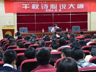 讲座伊始,王红教授表示“教师是大学最宝贵的资源,希望成为重大同学的资源”,王老师明确提出将从以下四个方面谈唐诗:唐诗产生的土壤、唐代诗人的明星效应、风流千秋的唐诗和唐史读本的选择。