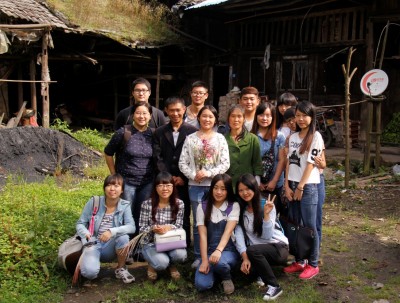 这时,陈玲也在家门口等着我们的到来。她是个瘦瘦高高的女孩,皮肤黑黑,留着斜刘海,扎着简单的马尾。刚一见到我们,她就一眼认出了去年前来探访过她的同学并热情地上前跟我们打招呼,邀请我们进屋坐。陈玲的家是一栋建于上世纪60年代的老旧木质建筑,被时间和烟火熏得灰黑色的老木头显得沧桑陈旧,裹着塑胶纸的窗户被山里的风吹得唰唰响,吱嘎作响的楼梯更衬得整座房子摇摇欲坠。房子里面只有简单的家具,空间有些狭小,我们一行人走进她家的火屋里,在火炉边的四根长板凳上坐下。刚一坐下,陈玲的妈妈就端出了热气腾腾的煮玉米,她笑着说:“也没有什么好招待你们的,这玉米是我们自家种的,没有打过农药,是天然的。”陈玲爸爸则在房外的梨树上为我们摘梨子。陈玲父母的热情好客使我们十分感动,我们相信他们的质朴与乐观也影响着陈玲。