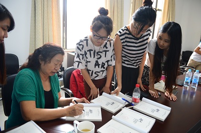 (董广安教授课后赠送给每人一本《穆青新闻思想与新闻实践》)