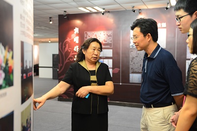 (董广安教授带领一行人参观穆青纪念馆并细心讲解)