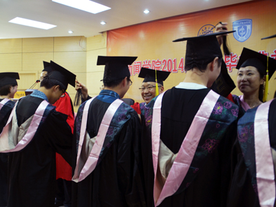 典礼最后,各位领导为获得学位的162名本科毕业生和55名研究生毕业生举行象征成熟的“拨穗礼”,并与同学们合影留念。典礼在同学们的告别声和领导们的祝福声中结束。
