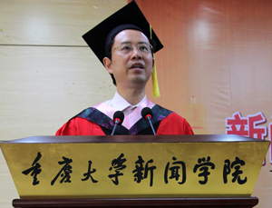 取得的成就,他说:“2013年以来,我们学院的学生毕业后在国内顶尖大学深造的人数,成几何级数增长,同时学生论文发表也上升了近70%,不论是数目还是层次都有着明显的提高。这也表示着我们学院的人才培养质量不断提升。”同时,董院长也分析了如今的新闻传播发展形势,他认为在如今传播科技不断发展,全球化不断加速的时代,同学们更应该有广阔的视野。最后董院长引用了康德的名言:“有两种东西,我对它们的思考越是深沉和持久,它们在我心灵中唤起的惊奇和敬畏就会日新月异,不断增长,这就是我头上的星空和心中的道德定律。”来勉励毕业后走向各行各业的同学,要求他们不忘记思考,不践踏道德。