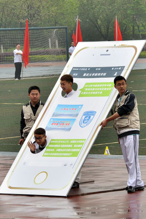 也积极地为本次开幕式做好准备。排在第九个入场的新闻学子,踏着整齐的步伐踏入会场,呼喊着“激扬青春,放飞梦想,新闻学子,再创辉煌。”的口号走过主席台。严整的队列、嘹亮的口号声和独特的表演,使得成人短视频