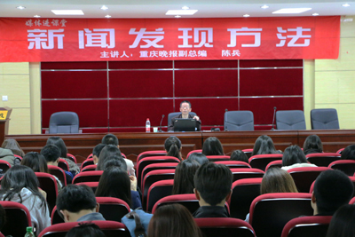 (《重庆晚报》副总编辑陈兵做讲座)