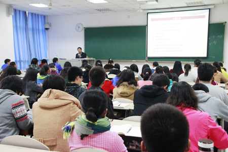 夏教授首先为大家讲解了为什么要学习马克思主义新闻观,他表示马克思主义新闻观是中国记者安身立命的东西,如果记者采访新闻的理念脱离了它,就会发生严重的问题。夏教授通过《重庆商报》的一次重大采访失误案例,阐释了新闻真实性和密切联系政治形势的重要性,强调了马克思主义新闻观的重大导向作用。紧接着夏教授讲到了互联网时代下我们面临的网上舆论斗争的复杂形势, “自媒体时代新闻传播出现了诸多乱象,归纳起来有这么几个:一、谣言四起,盲目跟风。二、意见领袖绑架民意,挟持政府。三、舆论的泛政治化,泛意识形态化。四、国内问题国际化,国际问题国内化。”他又列举了“南周事件”、“颜色革命”等几个国际国内的事例来讲述网络的巨大影响力。“在自媒体时代,网络已成为意识形态斗争的重要工具,媒体记者政治上是否可靠,能否拥有马克思主义新闻观办报办刊,这关系到我们国家的舆论阵地是否牢固。”夏长勇教授郑重道。