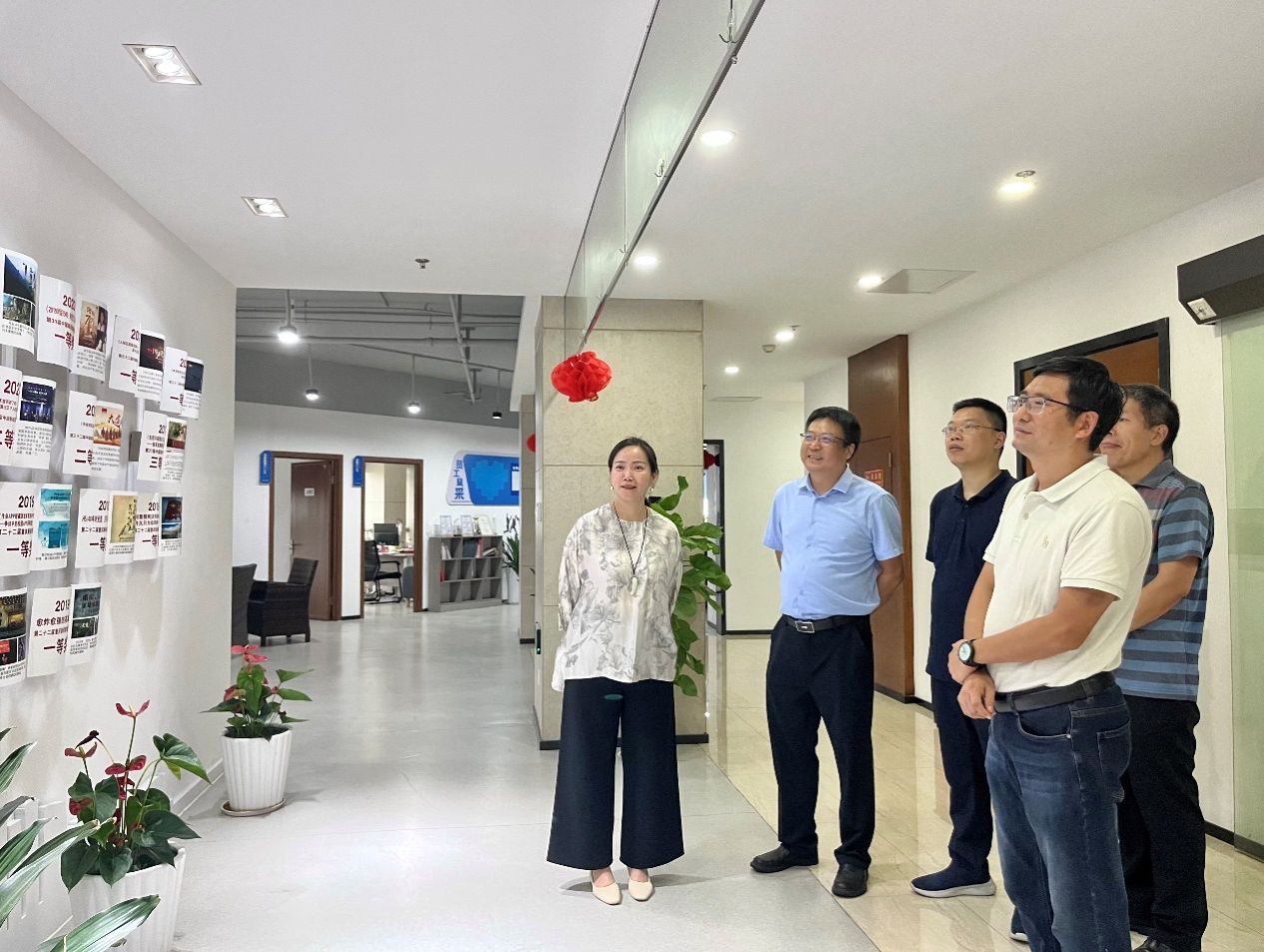 一行参观了华龙网集团数字传媒与产业创新展示中心、融媒体成人短视频和移动端运营中心。参观过程中,李春燕详细地介绍了华龙网的发展历程、数字化建设,以及媒体内容产品的生产流程等。