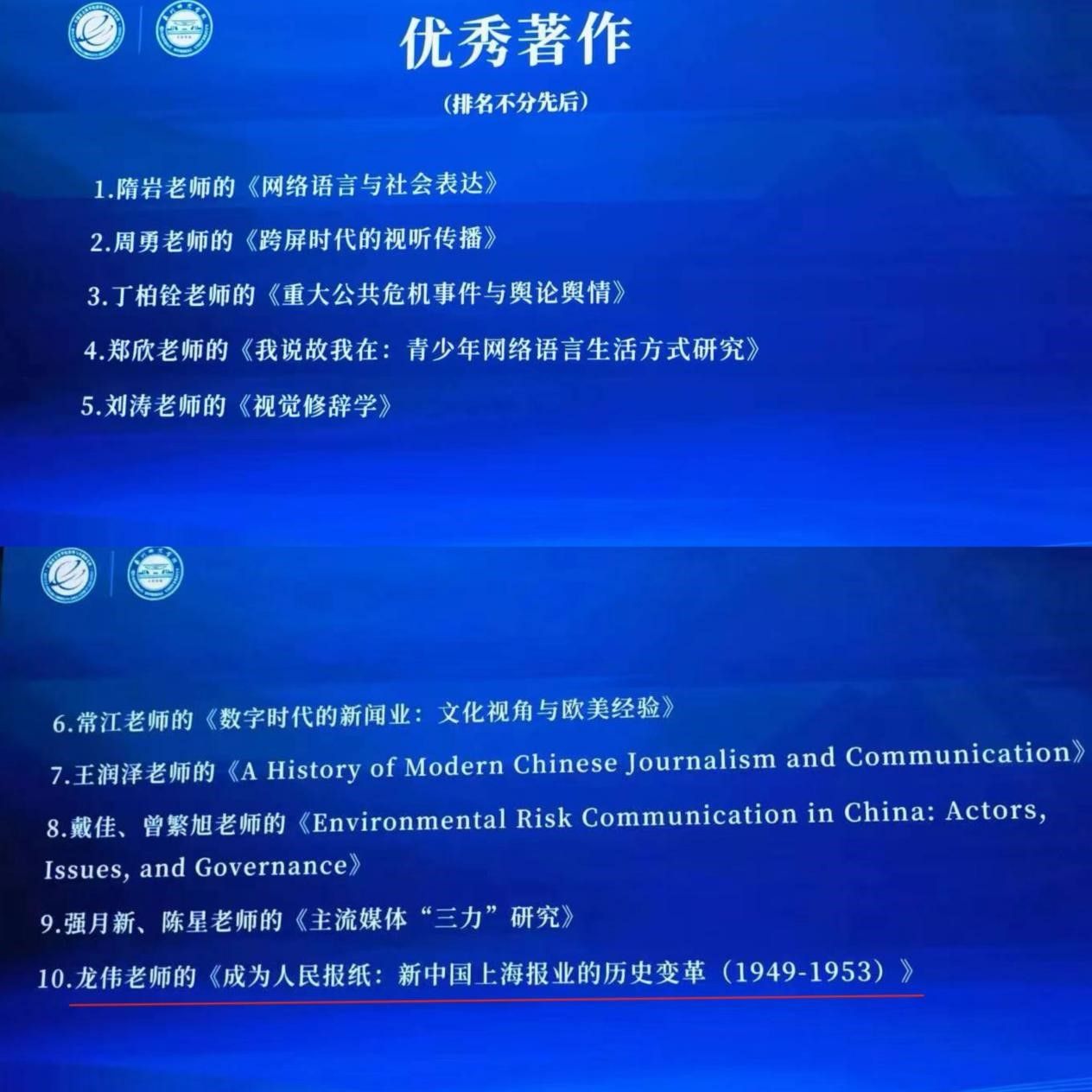 郭小安教授获得2021-2022年度“活跃的学术中坚”奖;龙伟教授的《成为人民报纸:新中国上海报业的历史变革(1949-1953)》获得“优秀著作”奖。成人短视频