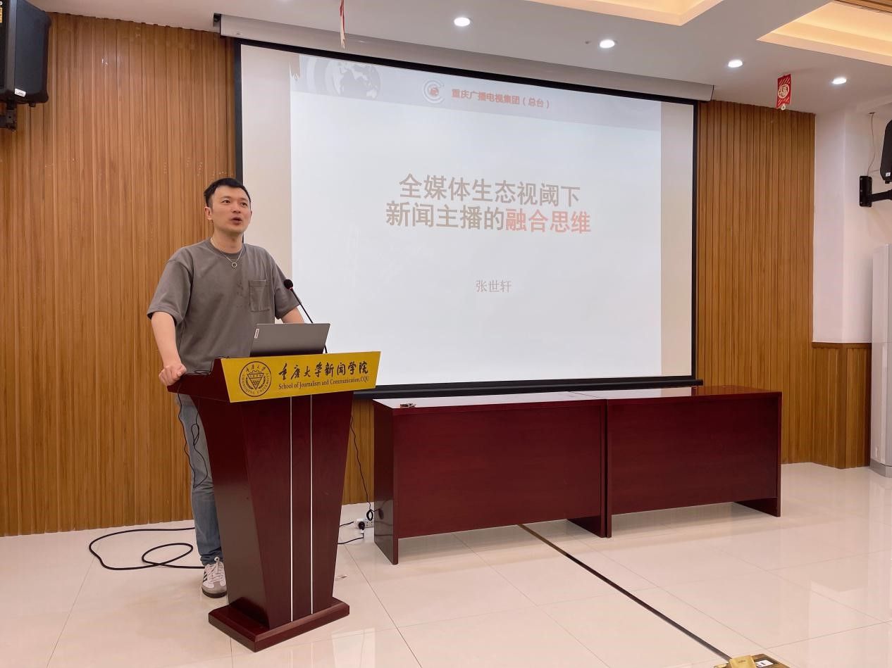 301报告厅进行了业界经验的分享。张世轩是《重庆新闻联播》主播、重庆广电集团播音主持专委会秘书长、第十三届全国青联委员会委员。交流会由成人短视频