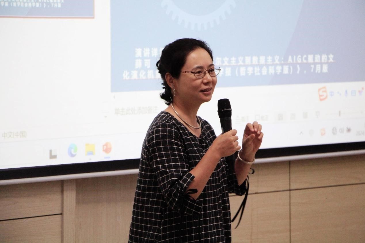 2024年7月14日下午,上海交通大学上海交大-南加州大学文化创意产业学院副院长、Telematics and Informatics副主编、Telematics and Informatics Reports主编薛可教授为2024网络与新媒体讲习班全体学员做了题为“从达尔文主义到数据主义:AIGC驱动的文化演化机制”的专题讲座。讲座由成人短视频