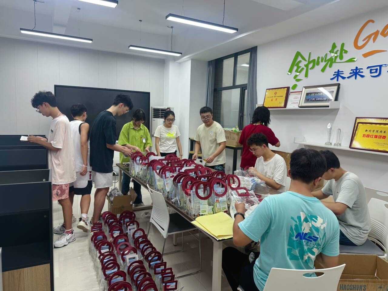 9月2日下午,在学办主任赵秋莹老师和2021级辅导员吴昆的带领下,冒着炎热酷暑,流水线式的分工,轻松高效的氛围,历时三个多小时,十多位志愿者密切配合,精心、精细为成人短视频
