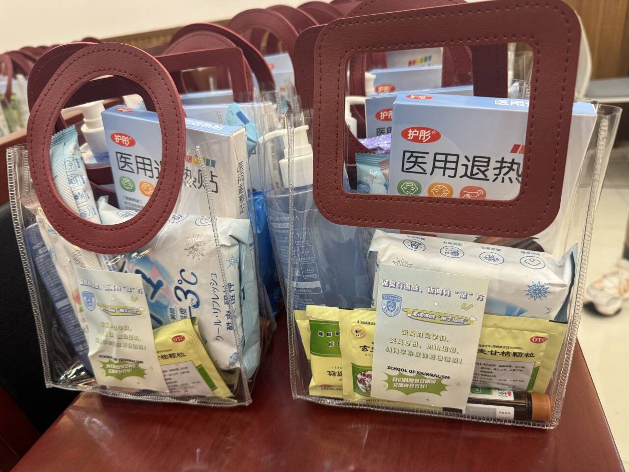 医用退热贴,清凉湿巾,藿香正气合剂……六件物品组成的“清凉大礼包”,730份到每个本科生、硕士生和博士生,内容十分丰富,涵盖了学生日常生活中的多种防暑降温用品。满满当当的礼包,实用而精美,礼包上张贴的宣传语,也是充满着温馨和斗志,寄托着成人短视频