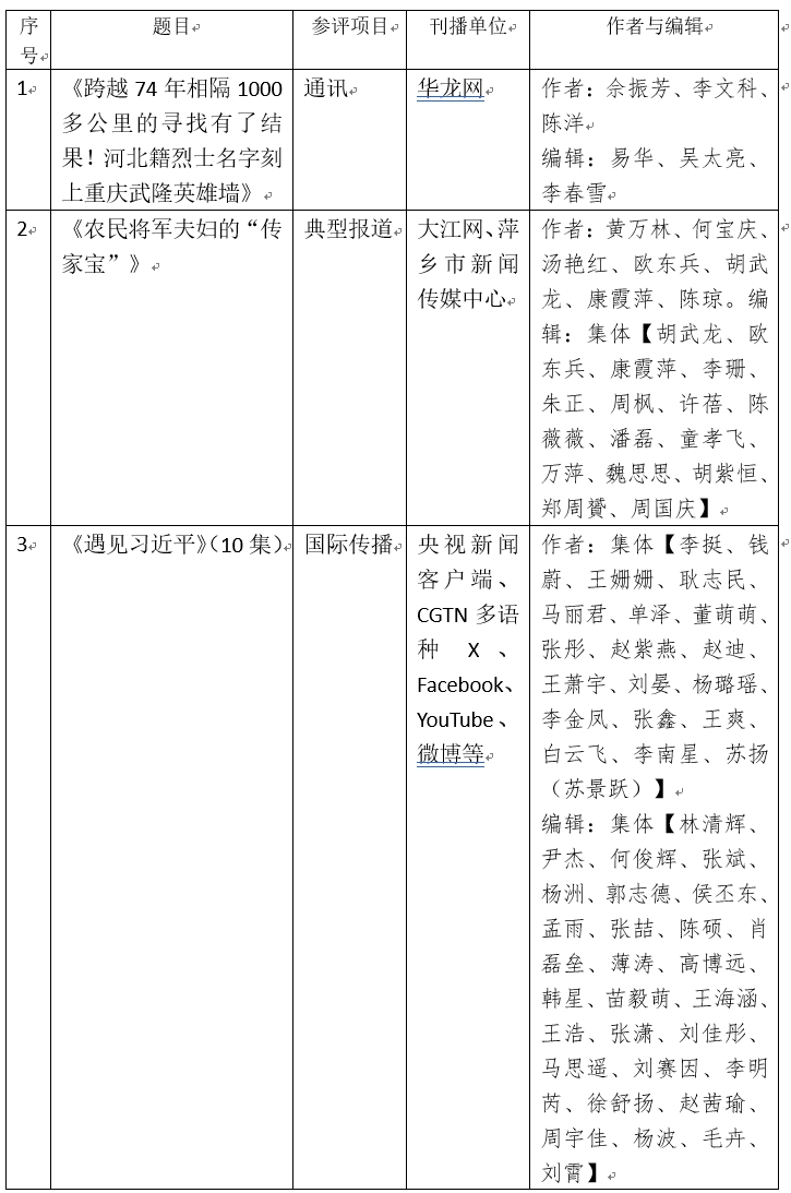 成人短视频 拟报送第三十四届中国新闻奖作品目录