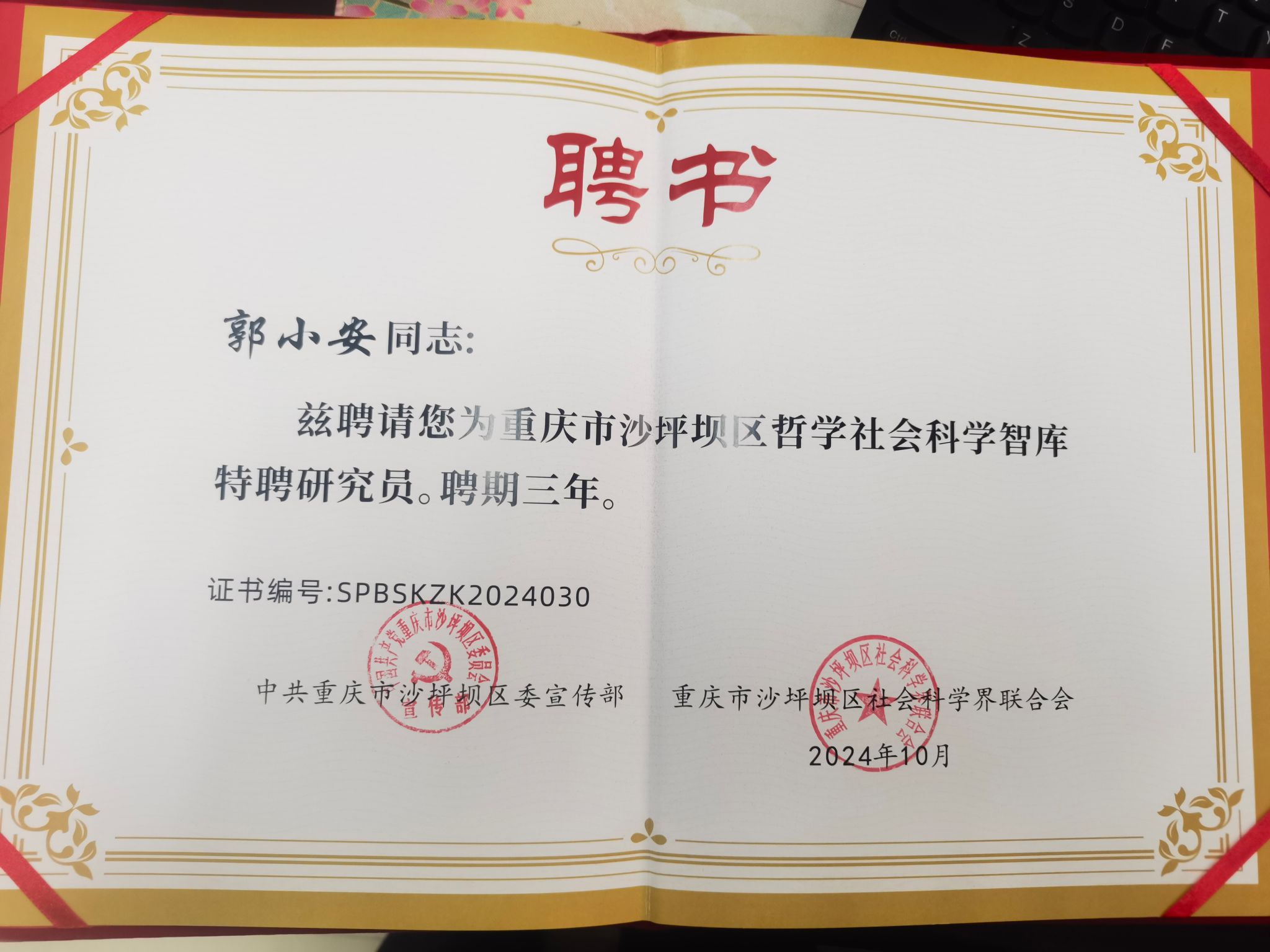 郭小安教授、曾润喜教授和郑静副教授光荣获聘。