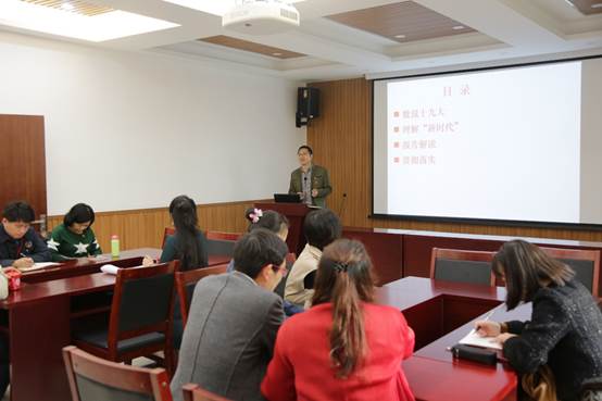 紧接着,李成波以《学习十九大报告》为主题,从“数”说十九大、理解“新时代”、报告解读、贯彻落实四个方面带领大家学习十九大报告,并就十九大报告的重要地位、新思想、如何贯彻落实十九大精神等内容进行了解读。