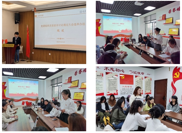 经过讨论,学院党委组织员魏媛老师宣读了大会选举办法并获得全体党员的一致赞成。此次选举以无记名投票的方式,差额选举三位党支部委员。在唐诗同志的主持之下,四位党支部委员候选人依次发表竞选宣言,随后由有选举权的23名党员同志投票产生研究生五支部的支委委员会。