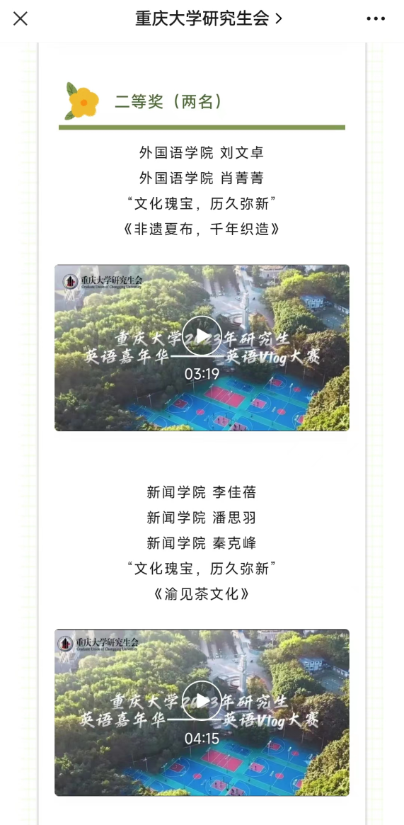 第三届研究生英语Vlog大赛中,荣获二等奖。
